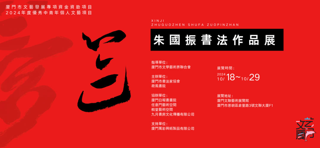 该展由厦门市文联指导,厦门市书法家协会、荷风书院联合主办,厦门日报书画院、任意门艺术空间、桐堂艺术空间、九月书房文化传播有限公司协办。此次展览共展出朱国振书法作品100余件,作品包含篆、隶、楷、行、草五种字体,有中堂、楹联、扇面、手卷、册页、小品等形式,另有部分竹刻、写瓷作品,以及朱国振养护的菖蒲和盆景作品做为空间点缀,可谓丰富多元。