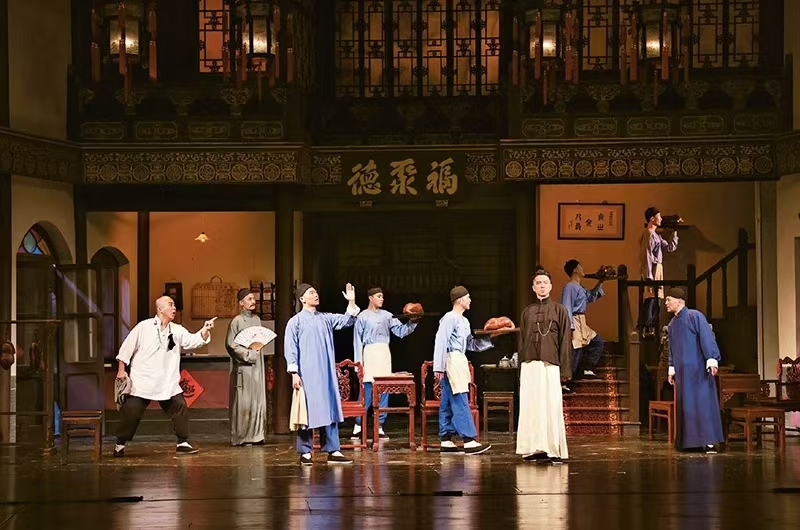 2024年6月28日至7月10日,北京人艺京味儿经典大戏《天下第一楼》重张上演,邀新老“顾客”再聚老字号“福聚德”,品“京师美馔”,解“苦辣酸甜”。《天下第一楼》作为北京人艺的看家戏之一,自1988年上演至今已36年,是北京人艺京味儿经典的代表作之一。图为该剧剧照。 中国文联供图