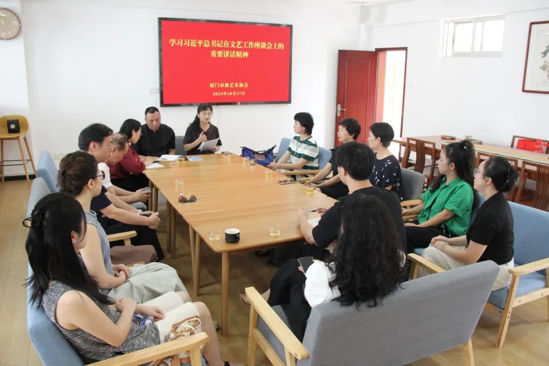 近日,厦门市曲艺家协会举行学习实践“习近平总书记在文艺工作座谈会上的重要讲话精神”座谈会,市曲协主席团成员及曲艺骨干参加座谈会。本次会议由市曲协主席张国雄主持。