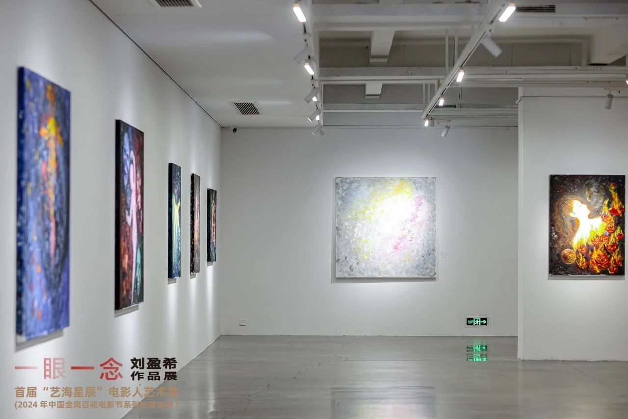 首届“艺海星辰”电影人艺术展特邀电影人、青年艺术家刘盈希策划跨界个展。展览以“一眼一念”为题,展出了刘盈希“眼”“纠缠”“光”“星空”“生肖”五个系列的近50幅作品,呈现了她对水墨、丙烯、油画等多种材料的把控力及书法功底。展览由中央文史研究馆副馆长、中国文学艺术界联合会原副主席、中国美术家协会名誉主席冯远撰写前言,中国美术家协会原分党组书记、副主席徐里题写展名。