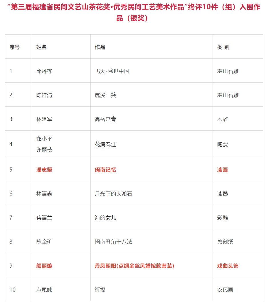 入选“第三届福建省民间文艺山茶花奖·优秀民间工艺美术作品