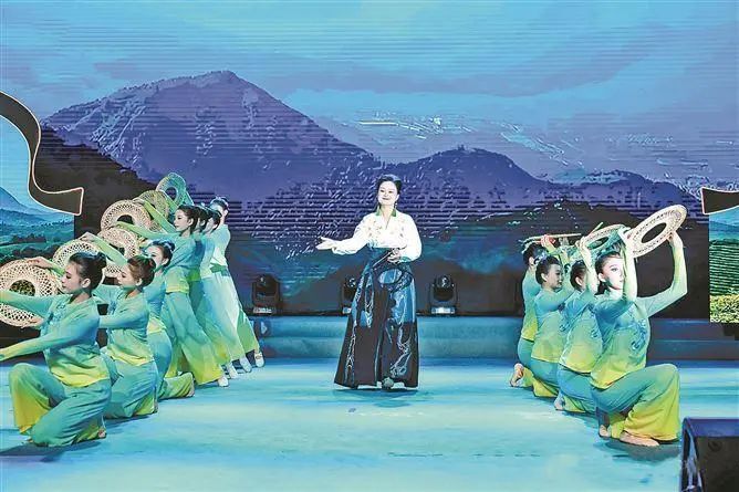 《两岸茶飘香》一曲,也极让人喜欢,“海峡东西岸,漂流两茶瓣,一片像福建,一片像台湾”。邱义娟声腔甜润,如茶水回甘。舞台背景是茶山青翠,层峦叠嶂,白云来了又去,采茶姑娘腰肢儿软,草帽舞结合实景茶艺表演。歌者白衣黑裙,从茶山款款走来,连耳坠子都换上了青茶色的长穗,浑身上下散发着浓郁的茶乡味道。