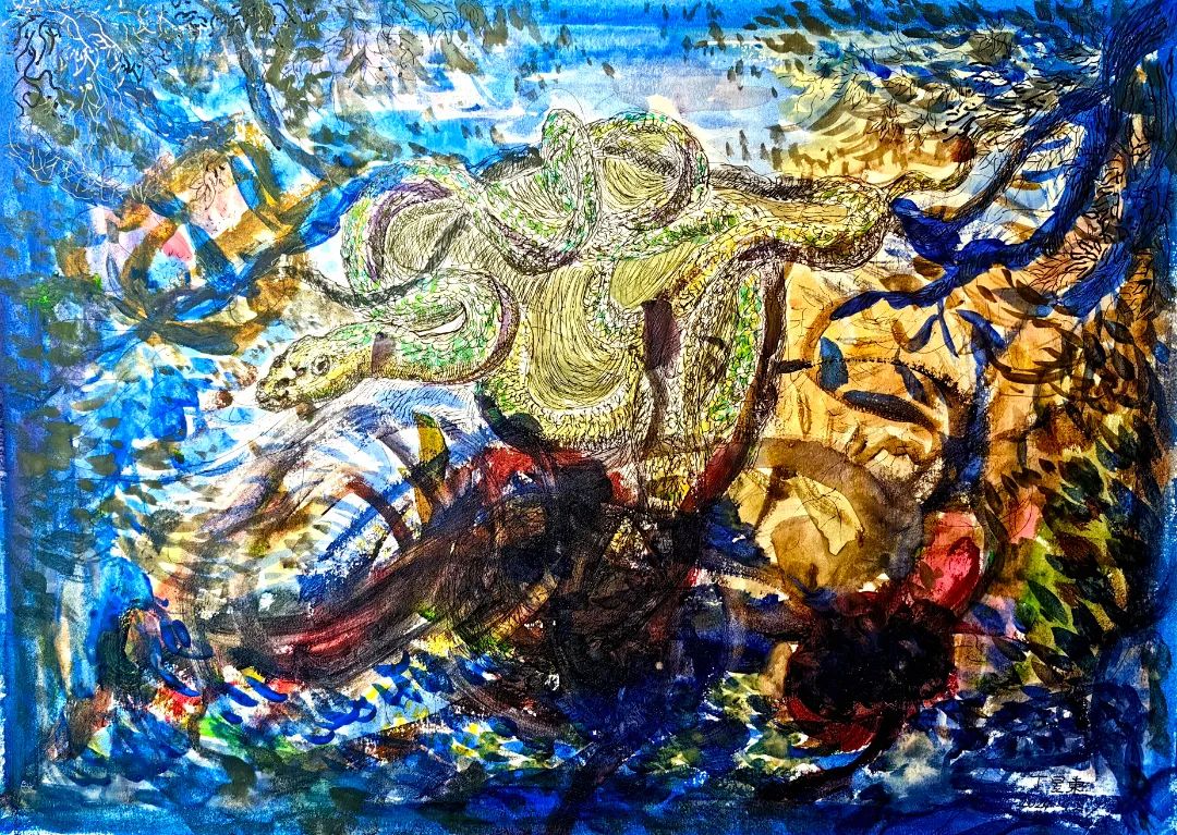 钢笔水彩《金蛇狂想》