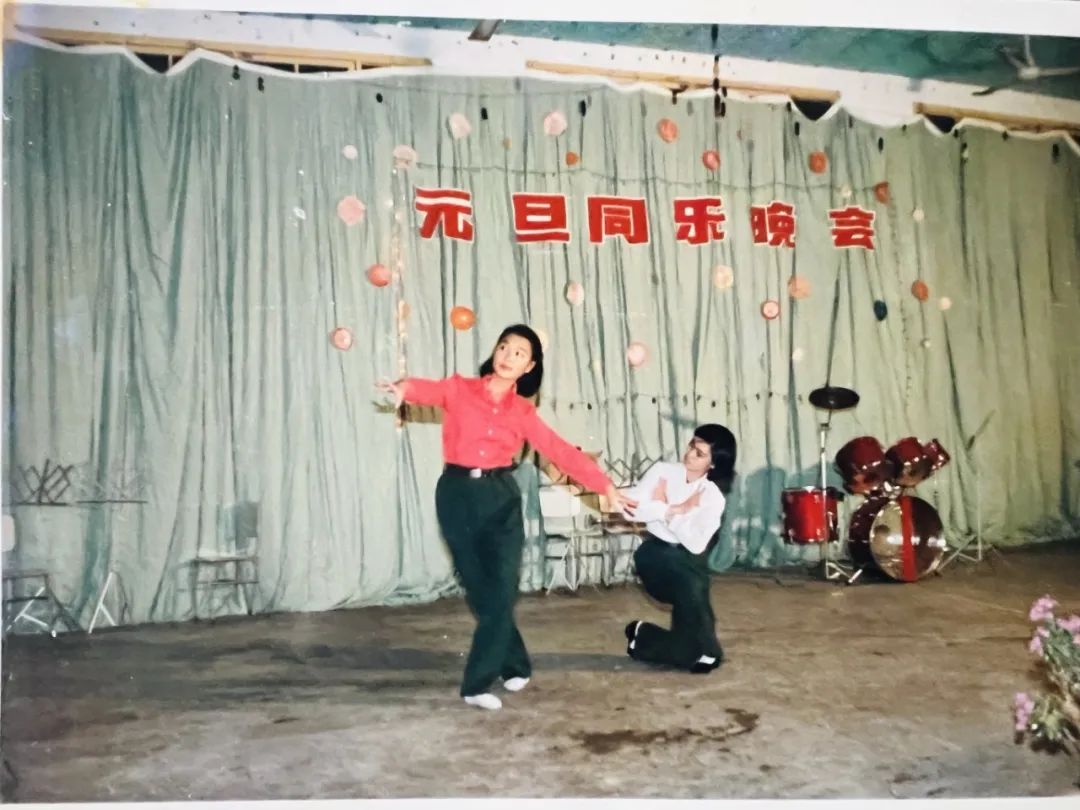 这是一张舞台演出照,摄于1988年元旦。红衣女孩是我,白衣女孩是女兵五班的班长。这是我们入伍入学的第二年。