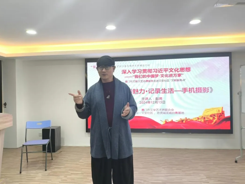 赵岗向大家讲解了构图技巧、动态瞬间捕捉、合照拍摄等方面手机摄影的基础理论,分享了自己的摄影心得和创作经验,还与大家探讨了手机摄影在艺术创作中的独特魅力,同时带来了诸多实操“干货”。