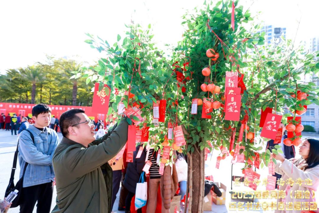 现场,来自两岸的百名书法家齐聚一堂,通过笔墨传情,为市民书写春联和“福”字,送上真挚的新春祝福。