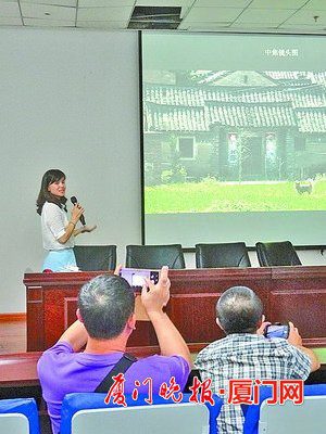 主讲人张鹤岩是中国摄影家协会会员、厦门市摄影家协会理事。她说,拍摄古建筑,首先要对古建筑有一个大概的了解,比如说拍一座皇宫,皇宫独有的一些彩色饰物是民间没有的。而民间建筑要表现的,无外乎是生活的房间,一些祭祀或者活动的舞台。