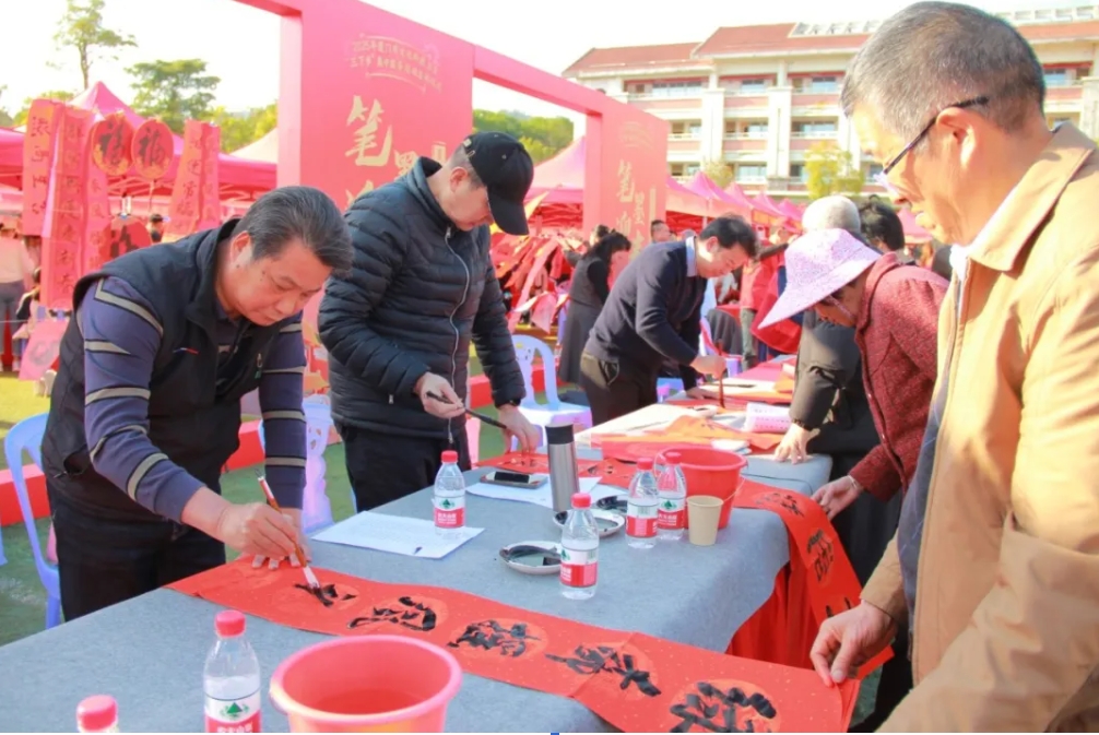 1月17日,2025年厦门市文化科技卫生“三下乡”集中服务活动启动仪式在同安区汀溪镇举行。厦门市文联组织文艺家开展“迎春送福”文艺服务活动。