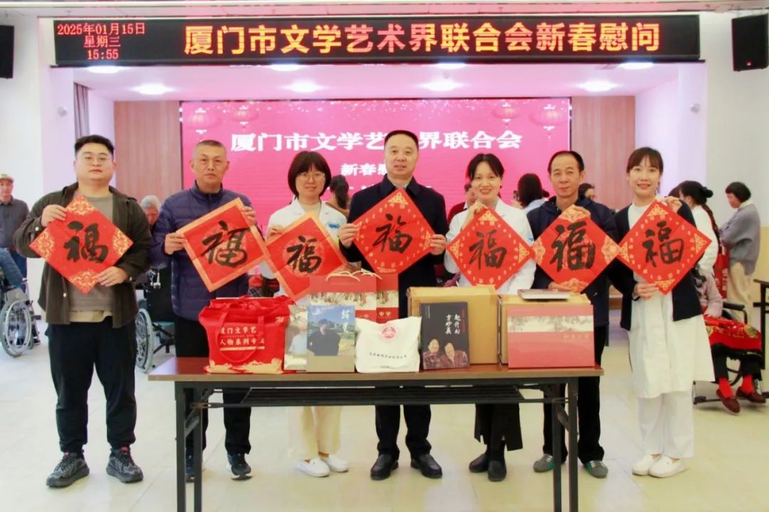 新春将至,市文联开展新春走访慰问,市文联党组成员、副主席陈春洋带队走访厦门市公路事业发展中心、陆军厦门特勤疗养中心、厦门市爱心护理院等“文联服务点”,为他们送上“福字”、春联,赠送《花香鸟语——福建省花鸟画大展作品集》《厦门文学艺术人物系列专辑》《珍珠湾文丛》《一城春色半城花作品集》《厦门文学》等精神食粮,表达亲切的慰问和诚挚的新春祝福,同时向“文联服务点”相关负责人了解“文联服务点”运行情况。