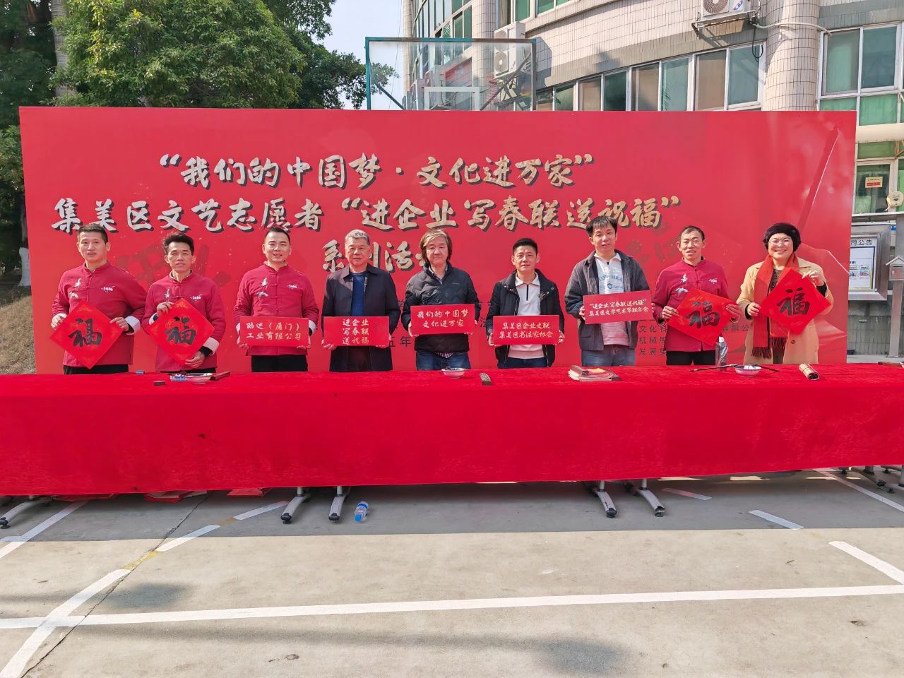 近期,“我们的中国梦·文化进万家”集美区文艺志愿者“进企业 写春联 送祝福”系列活动启动。暖暖冬日,书法家们为一线职工写春联、送祝福,现场气氛喜庆祥和,年味十足。活动由集美区文联指导、集美区企业文联、集美区书法家协会主办。