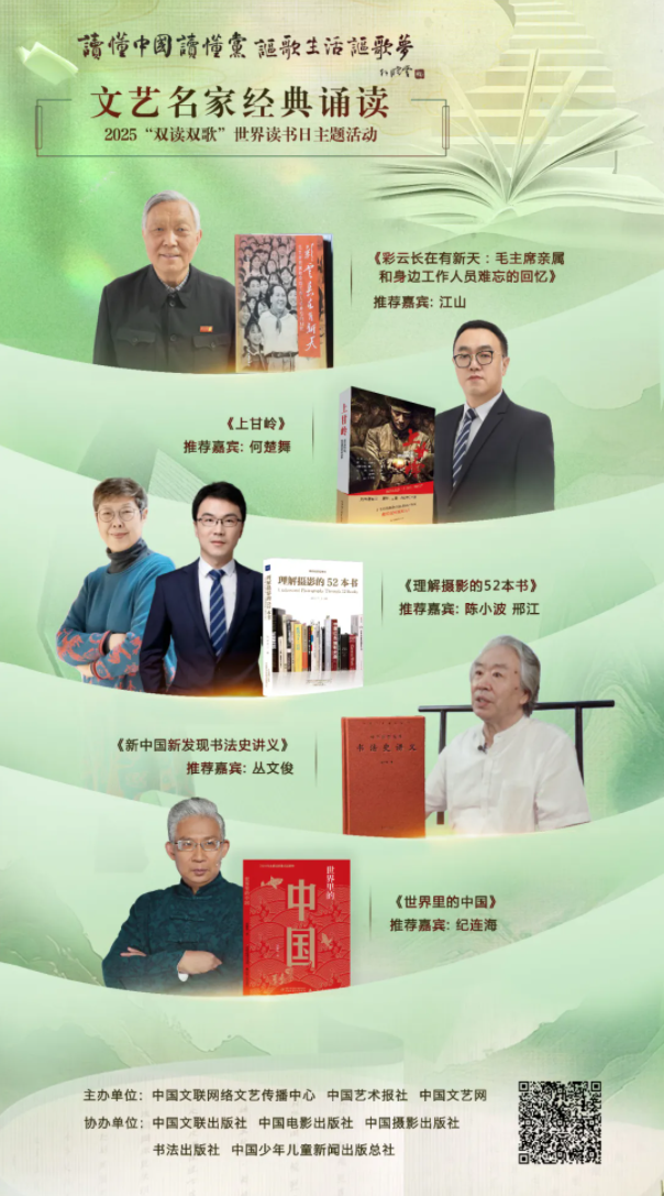 为深入学习贯彻习近平新时代中国特色社会主义思想,特别是习近平总书记致首届全民阅读大会的贺信精神,在第30个“世界读书日”到来之际,中国文联网络文艺传播中心、中国艺术报社、中国文艺网再度携手,继续开展“读懂中国读懂党 讴歌生活讴歌梦”书香中国全民阅读主题荐书活动,聚焦五大出版社的精品力作,搭建优质平台,以经典佳作涵养精神境界、以前沿思想拓展认知边界,激发全社会阅读热情,进一步涵育爱读书、读好书、善读书的社会风尚,为民族复兴伟业筑牢文化根基,为奋进新征程、铸就新辉煌注入更多文化力量。