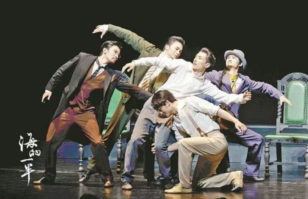 头戴礼帽、怀揣怀表、手持手杖,复古造型西装三件套,身高一米八的“男团”,舞步利落飒爽,强化了华侨搏击商海的南洋腔调,又彰显了中华传统文化与西方现代文明的碰撞。友情线虽未直接展开,但剧中面对“保实业”还是“保教育”的抉择,众人从争执到和解的群舞,以现代舞的肢体碰撞隐喻个人利益与家国道义的抉择,诠释了华侨融入当地但依然心系祖国(即《海的一半》的另一重含义)。
