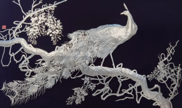纸塑+漆线雕《九如高足杯》
