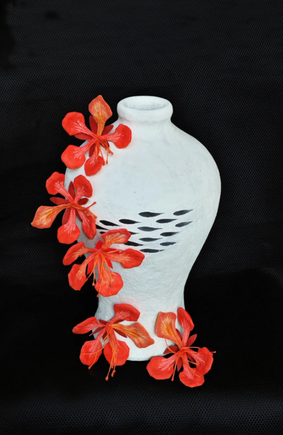 纸塑+拼布《梅瓶栖凤》