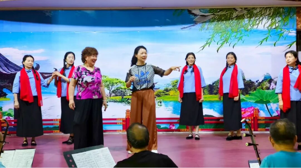 简志静带领镇海社区节目组成员们围绕歌仔戏节目《我愿为共产主义把青春贡献》的剧情、配乐等,以示范、教唱、欣赏等方式通过3场教学、排练,最终演绎再现剧目精彩桥段。
