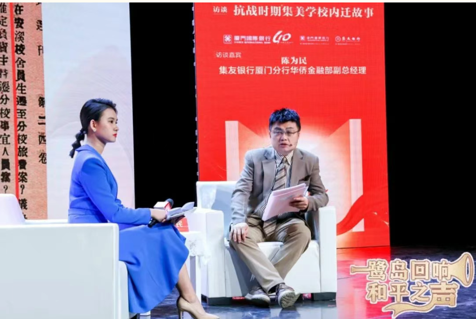 抗战时期集美职业学校校长叶维奏的后人、集友银行厦门分行华侨金融部副总经理陈为民受邀上台,分享集美学校抗战内迁的悲壮历史。