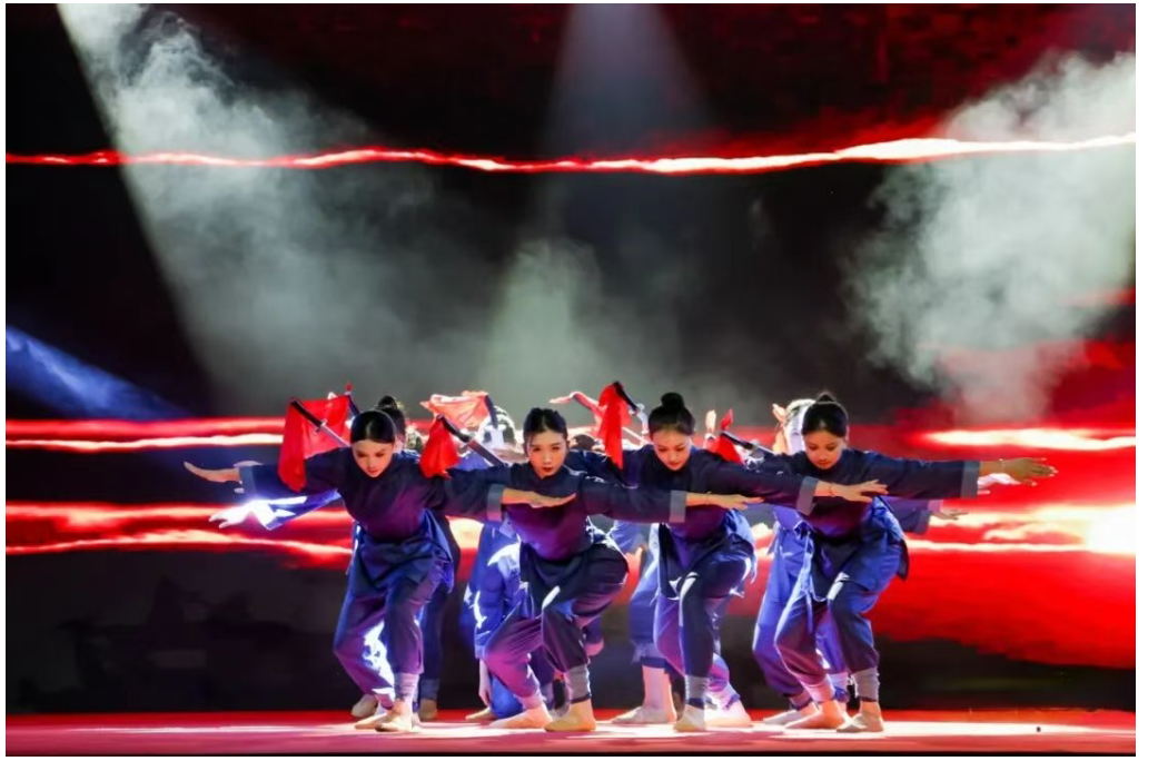 舞蹈《铁血忠魂》以刚劲舞姿再现先烈浴血奋战的壮烈场景;武术表演《英雄颂》则展现出中华儿女不屈的抗争精神,生动还原了那段山河不屈的岁月。