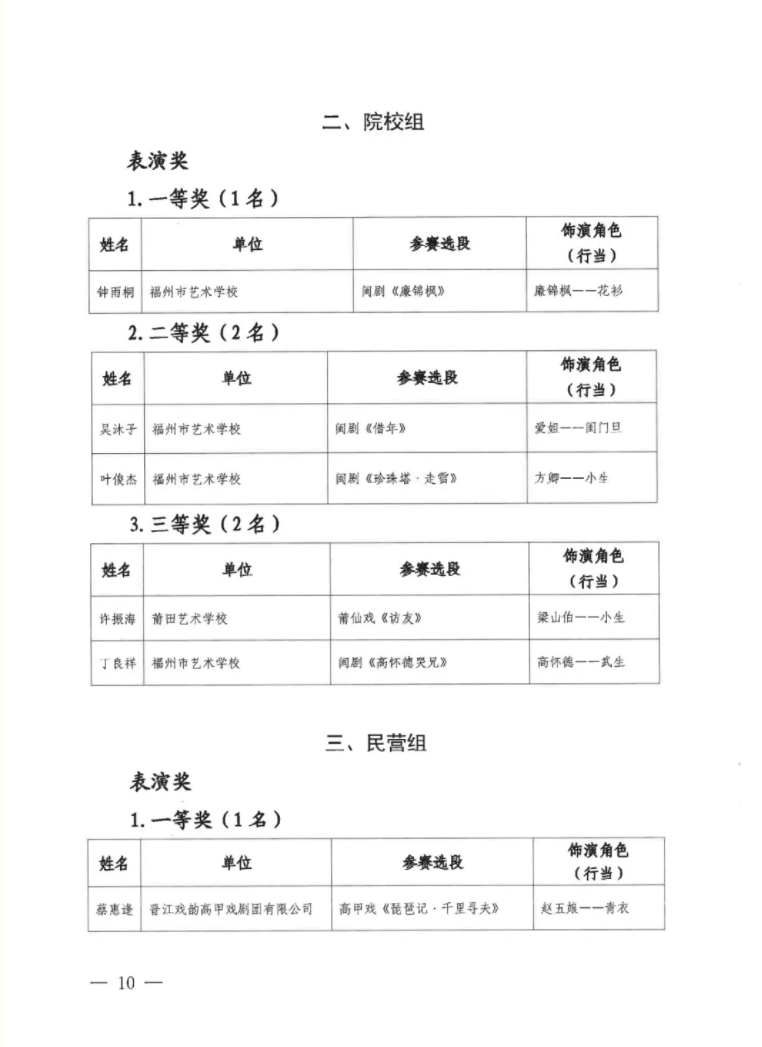 表演奖 · 一等奖
