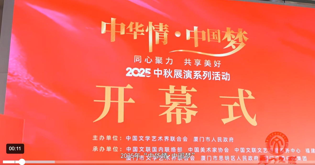 9月24日,2025 年 “中华情・中国梦” 中秋展演系列活动在厦门启幕。活动由中国文联、厦门市人民政府主办,中国文联国内联络部、中国美术家协会、中国文联文艺志愿服务中心、福建省文联、厦门市文联、厦门市思明区人民政府、厦门广播电视集团联合承办,以 “同心聚力 共享美好” 为主题,借多元文艺形式弘扬中华优秀传统文化,深化两岸文化交流。