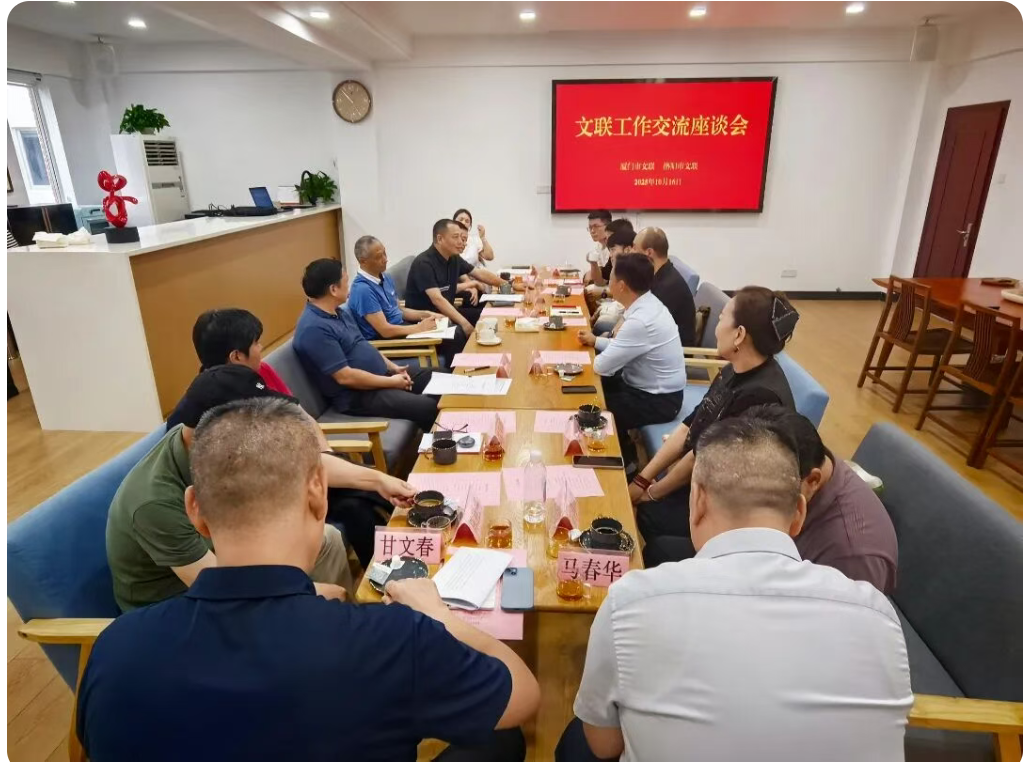 10月16日,洛阳市文联党组成员、副主席陈鋆宝一行到访厦门市文联开展调研交流。调研团先后参观了厦门文联艺术展览馆、视听鉴赏室、“文艺家之家”等,并在沙龙空间举办文联工作交流座谈会。双方围绕“文艺两新”工作、文艺精品创作、文艺品牌打造、青年文艺人才培养等议题深入交流,分享了各自在文艺组织建设、创作扶持、活动开展等方面的经验与做法。