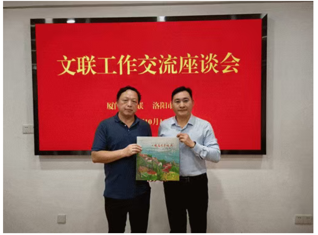 会后,王元代表厦门市文联向洛阳市文联赠送了《一城春色半城花——美术名家厦门采风写生作品集》《珍珠湾文丛》《厦门文艺作品评论选》等书籍。