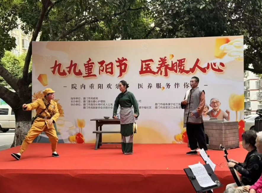 翔安吕塘戏曲学校通过传统的高甲戏艺术形式,展现厦门地区革命斗争的故事,通过“小人物”的故事反映了宏大的历史背景,为社区老人带来精彩的高甲戏《送枪》。