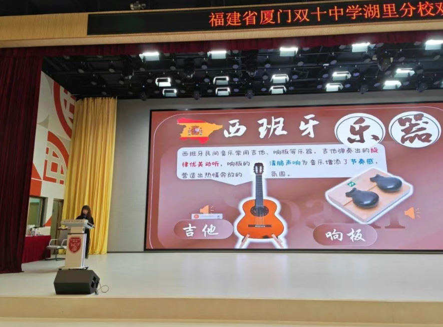 王荟通过介绍欧洲、拉丁美洲、非洲的地理特点结合当地的音乐,让同学们足不出校穿越三大洲,开启一场音符与画面交织的旅程,解锁跨文化的独特魅力。