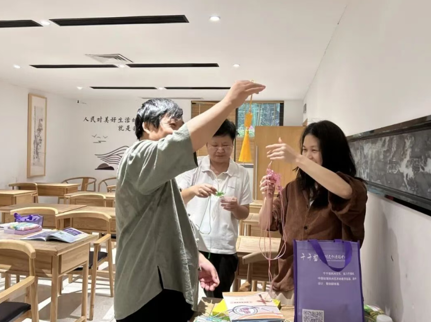 刘进才通过2次课程,为大家带来“三回三复翼盘长”与“四回三复翼盘长”的实用编制课程,通过互动实操让大家掌握了具体结型的编制方法,进一步理解中国结的结构逻辑。