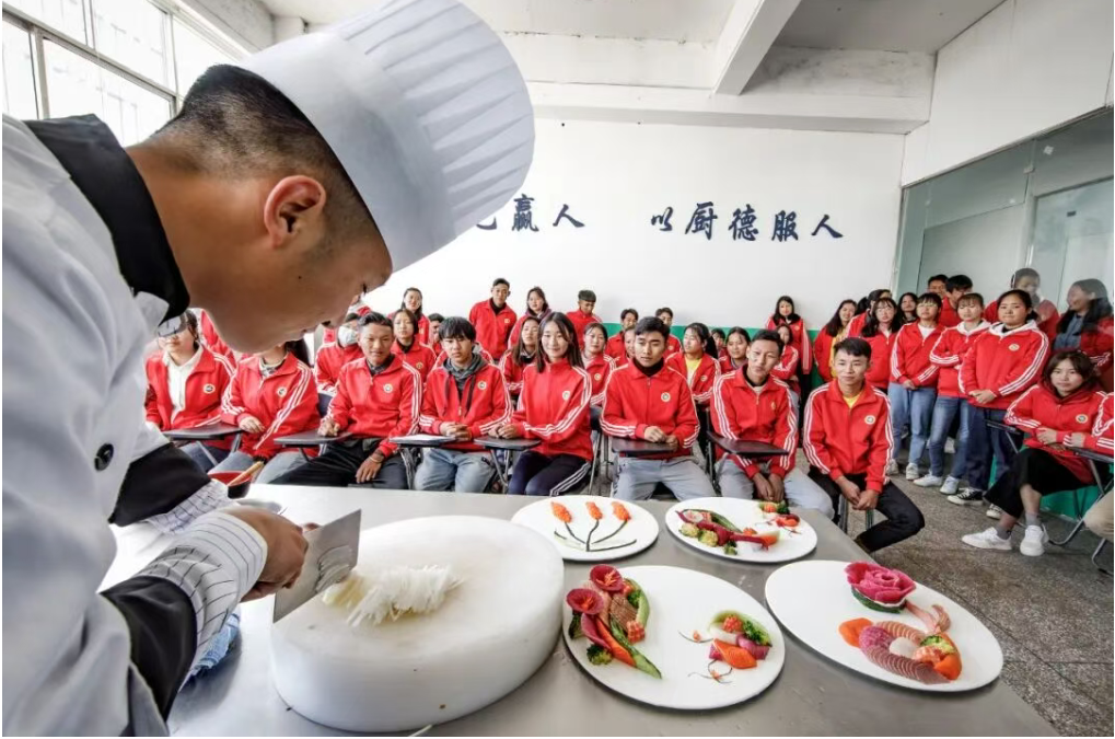 2020年11月11日,在盐源县职业中学读书的村民参加厨师技能学习。