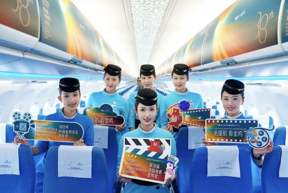 随着11月11日MF8118航班的平稳落地,厦门航空2025年金鸡百花电影节“坐厦航 看金鸡”主题航班圆满收官。这一场跨越三天的空中电影之旅,为前来参加第38届中国电影金鸡奖的嘉宾和广大旅客带来了独特的飞行体验。