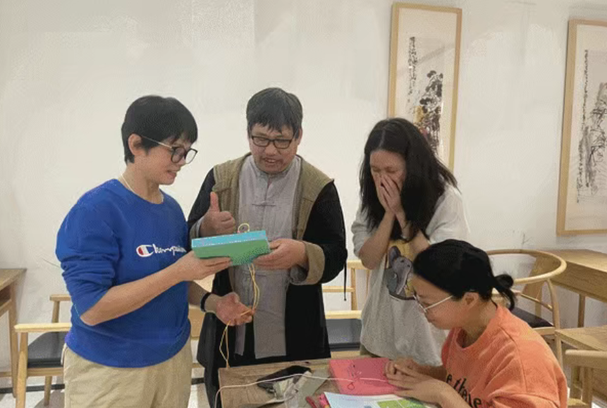 中国结编制系列课程采用“理论+实操”模式,以由浅入深、循序渐进的教学节奏开展教学,既照顾了新学员的学习基础,也满足了老学员的提升需求。随着课程深入,五回三复翼盘长、四回五复翼盘长等兼具观赏性与挑战性的复杂技法逐渐引入,让学员们在动手实践中感受传统工艺的精妙。