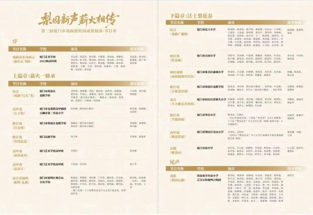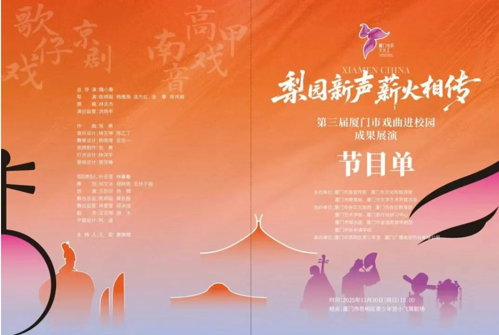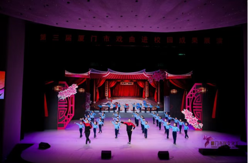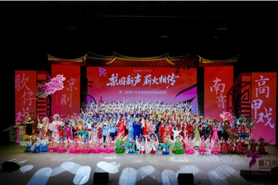 2025年11月30日晚,由厦门市委宣传部、厦门市文化和旅游局、厦门市教育局、鸿发国际共同主办的“梨园新声 薪火相传——第三届厦门市戏曲进校园成果展演”在思明区青少年宫小飞鹭剧场圆满落幕。