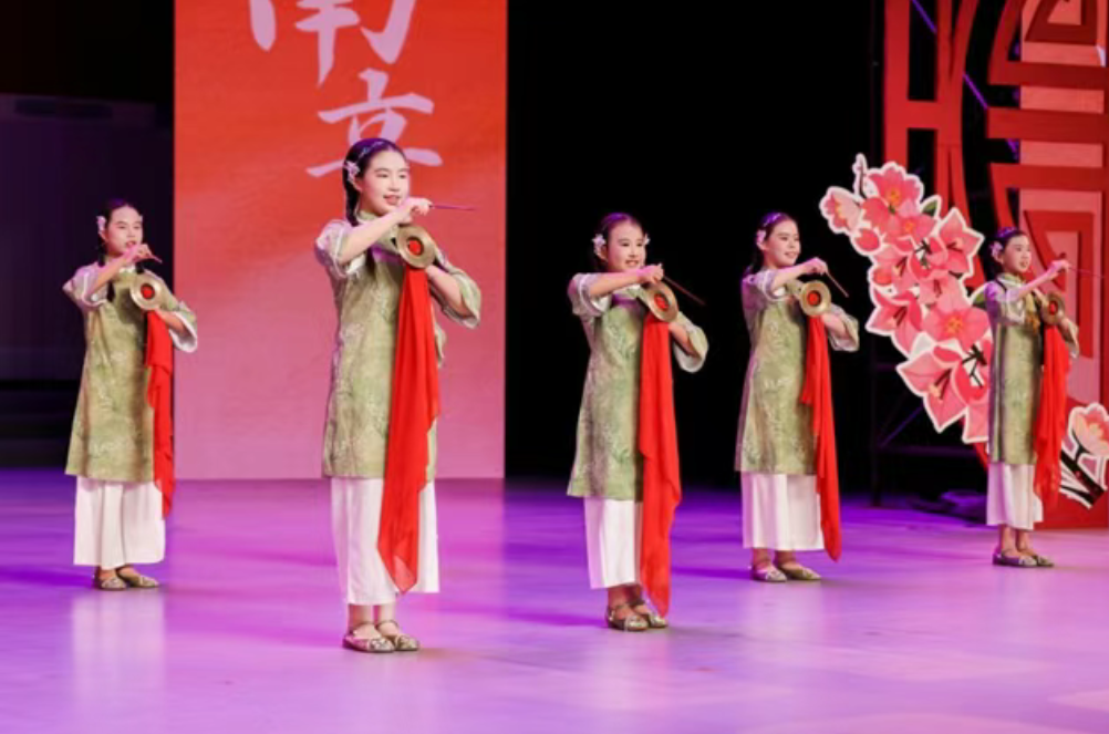 △海沧延奎实验小学芸美分校鹿鸣合唱团演唱的《梨园心曲》