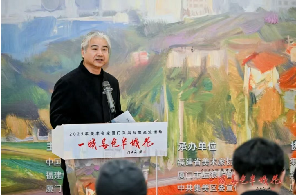 一年一度到厦门,春色更浓花更盛,这是我们连续三年来到厦门的感受。这次我们再次相聚鹭岛,共同开展2025年美术名家厦门写生交流活动,既是天时地利人和,也有若干方面新的背景、新的任务、新的课题在这里。第一,我们正在深入学习践行习近平文化思想,作为文艺工作者,我们要怀着对时代、对一方热土的感受,努力在作品中流露出踏上此地的真切情感,以丹青翰墨描绘新时代。第二,我们正在贯彻落实党的二十届四中全会精神,此次写生,来自油画、中国画等不同画种界别的美术名家们相聚鹭岛,在采风写生中深入交流探讨,创作更多体现文化自信的精品力作,共同思考迈进“十五五”。第三,我们再次来到厦门,深切地感受到了厦门的风土人情、浓郁的传统文化,每一次来厦写生,都有新的体会。本次写生将围绕厦门特区新发展、新成就来进行艺术表达,为厦门的城市发展留下形象的印记。