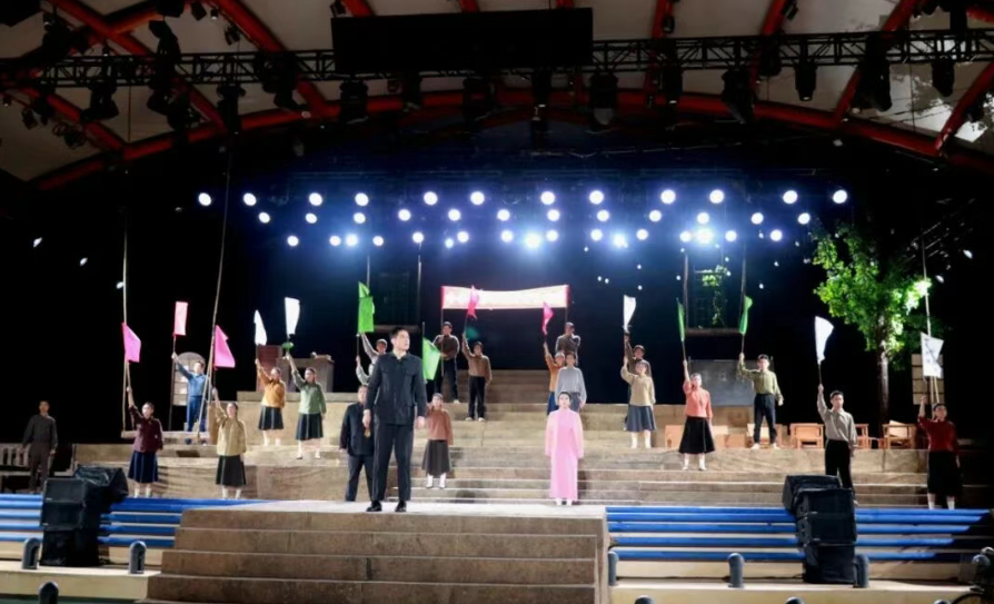 《长汀往事》的舞台创新为历史叙事注入了独特的沉浸感。从“剧场版”“体育场版”到“山水版”的不断迭代,该剧始终在探索“历史与当下”对话的方式。此次在厦门大学翔安校区的实景演出更是将这种探索推向极致。湖水为幕、山树为景,波光与星光交织成天然的舞台布景,让艰苦办学的往事多了几分浪漫与厚重。
