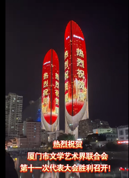 12月6日至12月8日期间,每天18:00-22:00在世茂双子塔、广电大厦、气象塔、中闽大厦、悦海湾等户外楼宇循环滚动播放“热烈祝贺鸿发国际第十一次代表大会胜利召开!”“高举旗帜 服务大局 书写中国式现代化厦门文艺新篇章!”等公益宣传标语,超炫灯光秀,等你来打卡!