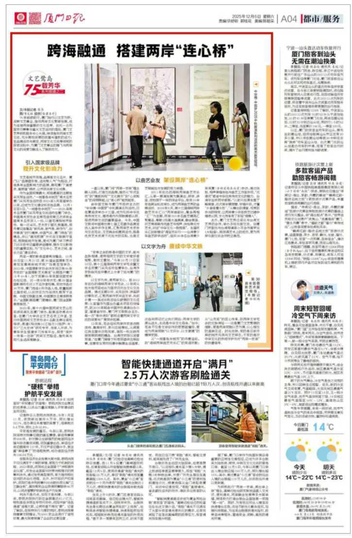 一直以来,厦门将“两岸一家亲”理念融入实践,打造交流品牌,推动从“形式互动”到“情感共鸣”“文化展示”到“心灵契合”的深层跨越,让“连心桥”越筑越牢。