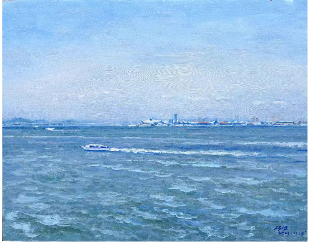 油画《厦金大桥远眺翔安机场》