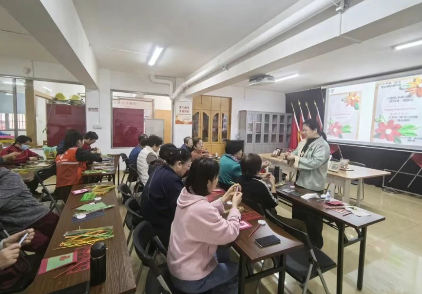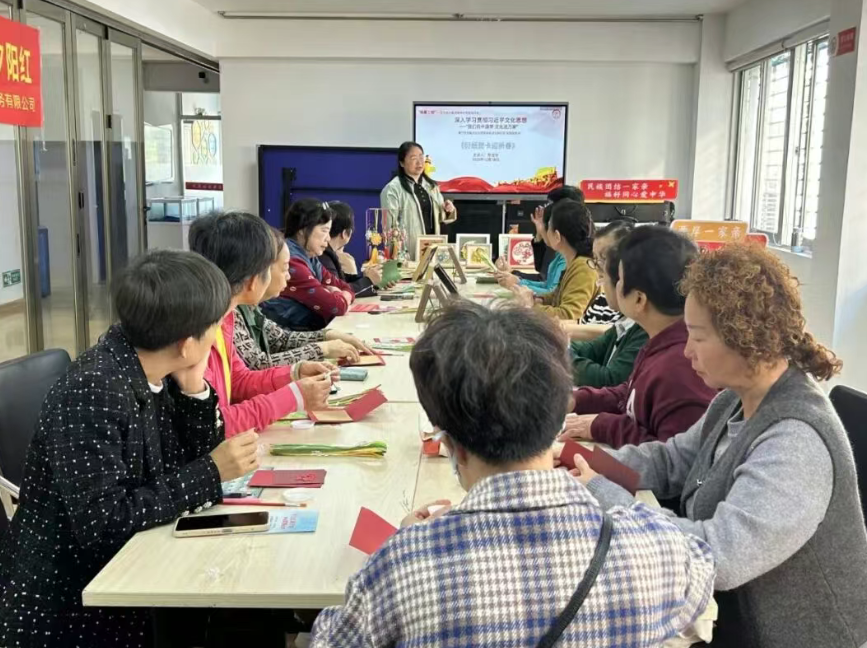 陈宝珍通过衍纸基础技法(卷、捏、粘)培训、色彩搭配训练、创意设计指导以及主题创作实践等多个环节,逐步引导参与者掌握正确的衍纸操作方法、提升审美与创意能力,并在协作创作中感受手工艺术之美。课程中,陈宝珍还带着大家制作新春主题衍纸贺卡,用亲手制作的衍纸作品传递新春祝福。
