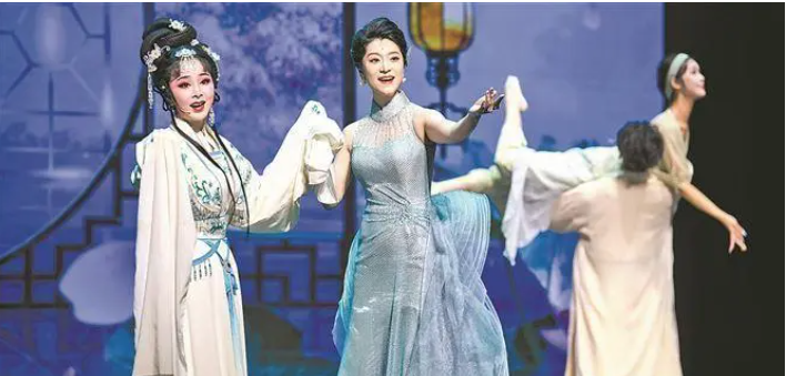 从“古典意蕴”到“跨界融合”,再到“音乐剧魅力”,音乐会以四个篇章递进,让观众在不同艺术风格的碰撞中感受音乐的多元魅力。曾思还在曲目创新改编上进行跨界融合的尝试,如《前世今生》以歌仔戏曲牌为基础结合现代编曲与古典舞伴舞。整场演出形式多样,独唱、对唱、合唱等交替呈现,为观众带来丰富的视听感受。