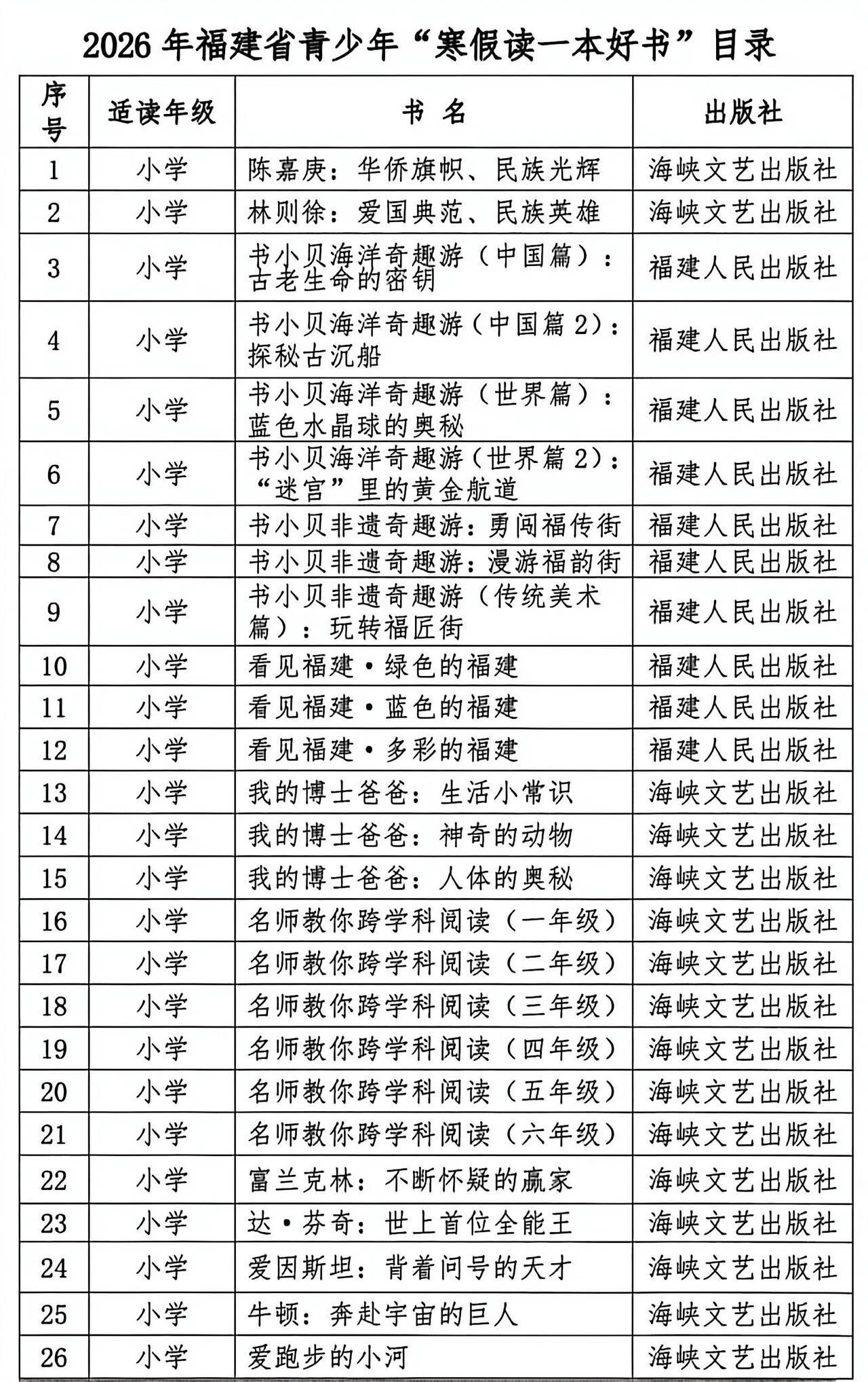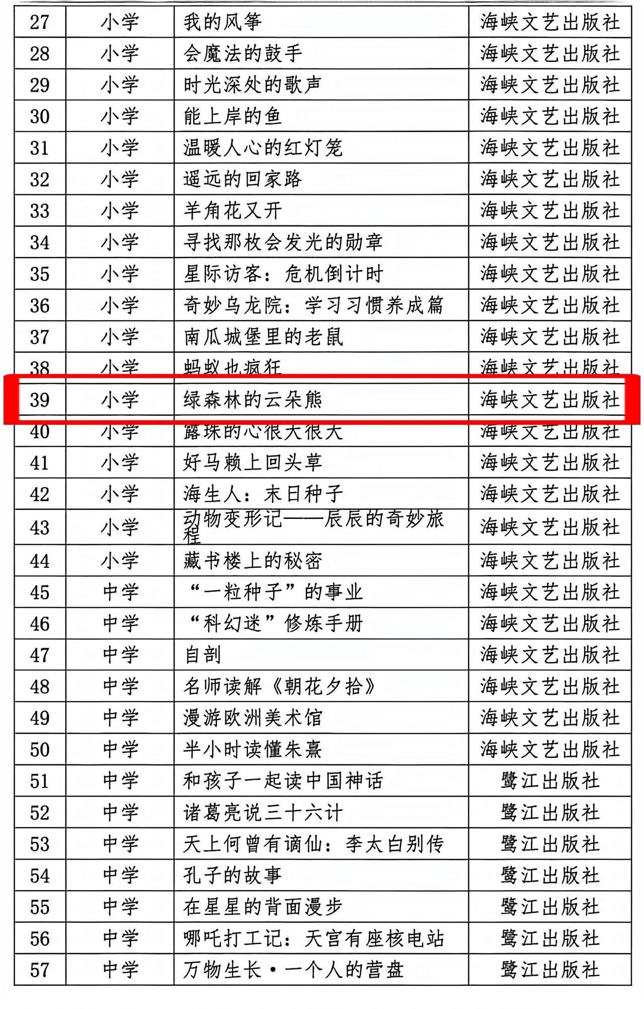 近日,福建省全民阅读促进会组织专家编制并发布了《2026年福建省青少年“寒假读一本好书”目录》,共选定优秀图书57种,其中包括小学阶段推荐图书44种,厦门作家任军的作品《绿森林的云朵熊》位列榜单。该书为2024年度厦门市文艺发展专项资金优秀中青年个人文艺资助项目。