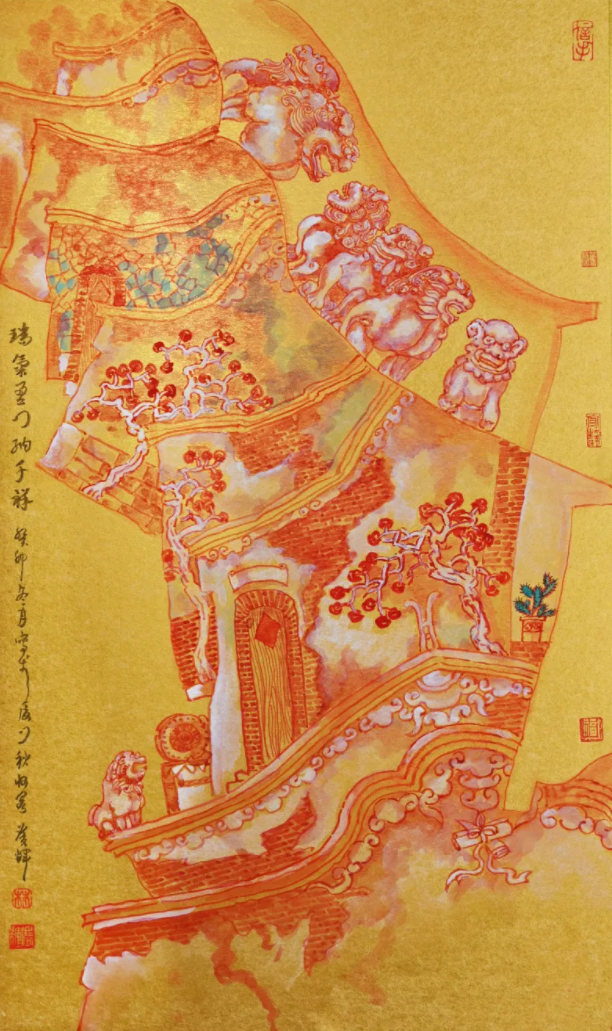 中国画《瑞气盈门纳千祥》