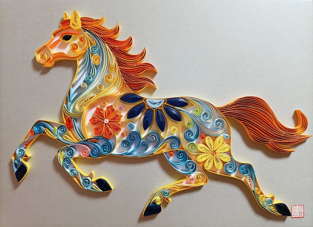 衍纸《瑞马迎春》