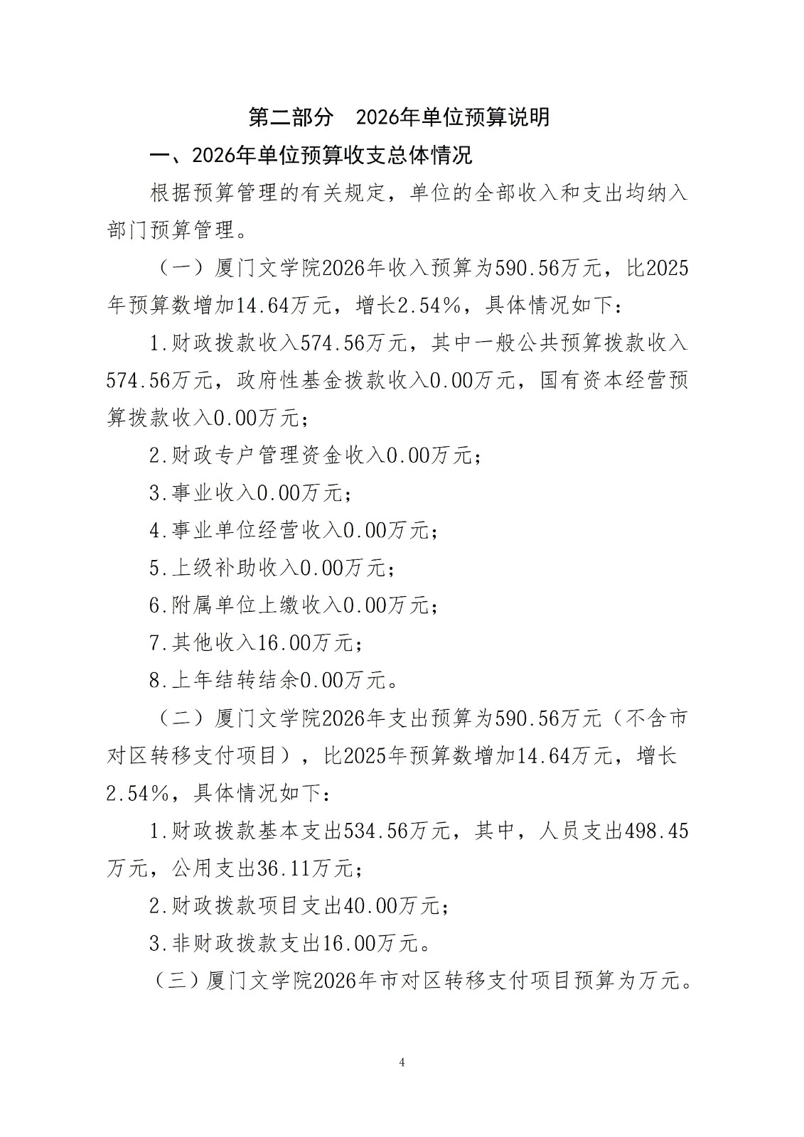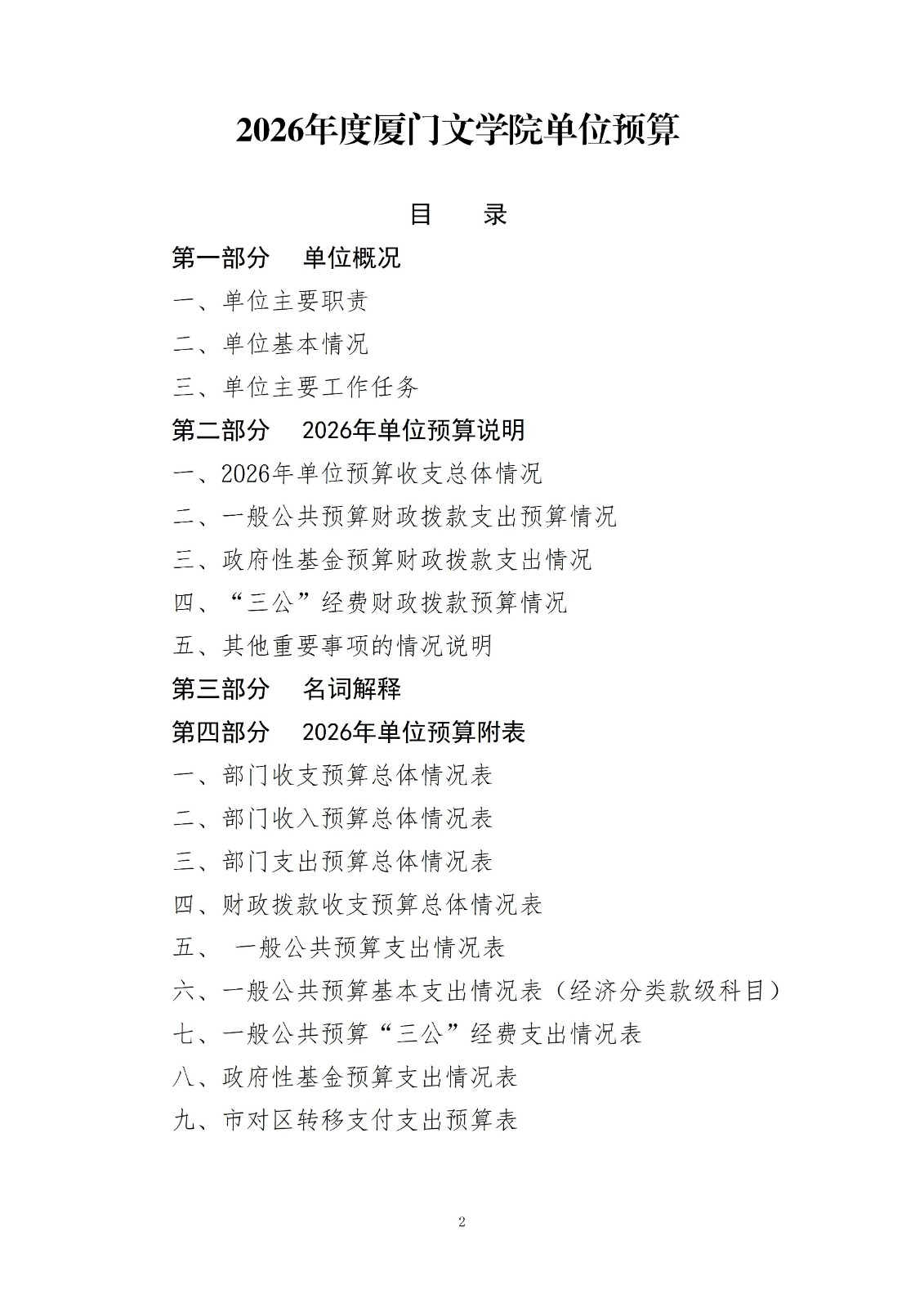 2026年厦门文学院单位预算公开套表.xlsx