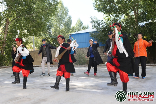 采风团的舞蹈艺术家跟着拉孜农民艺术队一起跳《拉孜堆谐》
