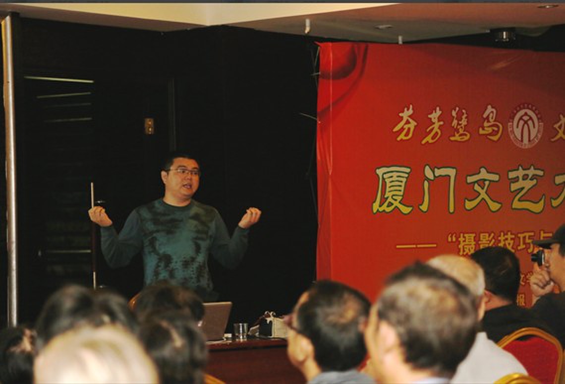 陈阿姨说的摄影讲座是厦门文艺大讲堂的公益课程之一,最近一期于7日晚上在白鹭洲“摄影广场”开讲,由许亚东老师主讲“色彩管理”。陈阿姨和她先生老王、儿子小王共上一堂课,成了“同班同学”。