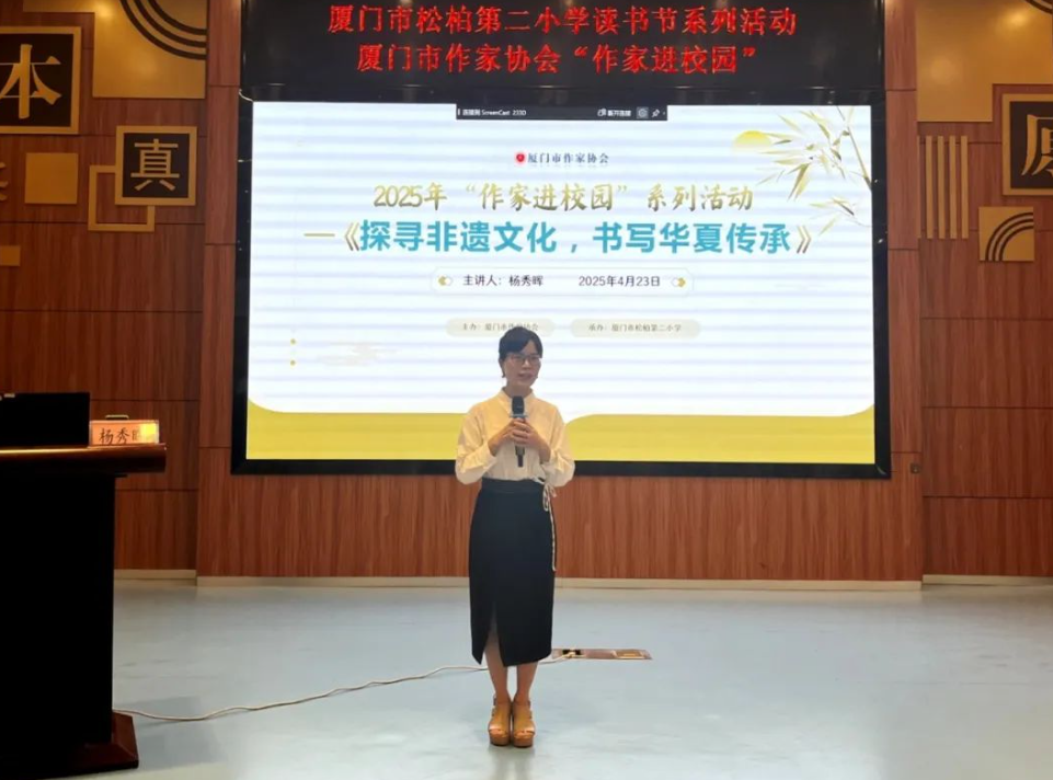 最美人间四月天,正是读书好时光。为响应全民阅读的号召,2025年4月,厦门市作家协会以“文学浸润校园,书香赋能成长”为主题,特别策划“作家进校园”活动,组织李秋沅、徐小泓、欧阳鹭英、罗建华、叶明利、杨秀晖、柯晓珊、谢阿贞、薛薇莎等9位本土作家,走进集美第二小学、东渡第二小学、厦门市音乐学校、翔安区金山小学、深田小学、松柏第二小学、海沧区洪塘学校、同安第一中学等中小学,开展了9场别开生面的阅读活动。