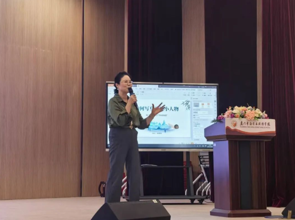 作家柯晓珊为同学们带来主题为《跟着名家名篇读懂鹭岛——共读〈名家笔下的老厦门〉》的讲座。