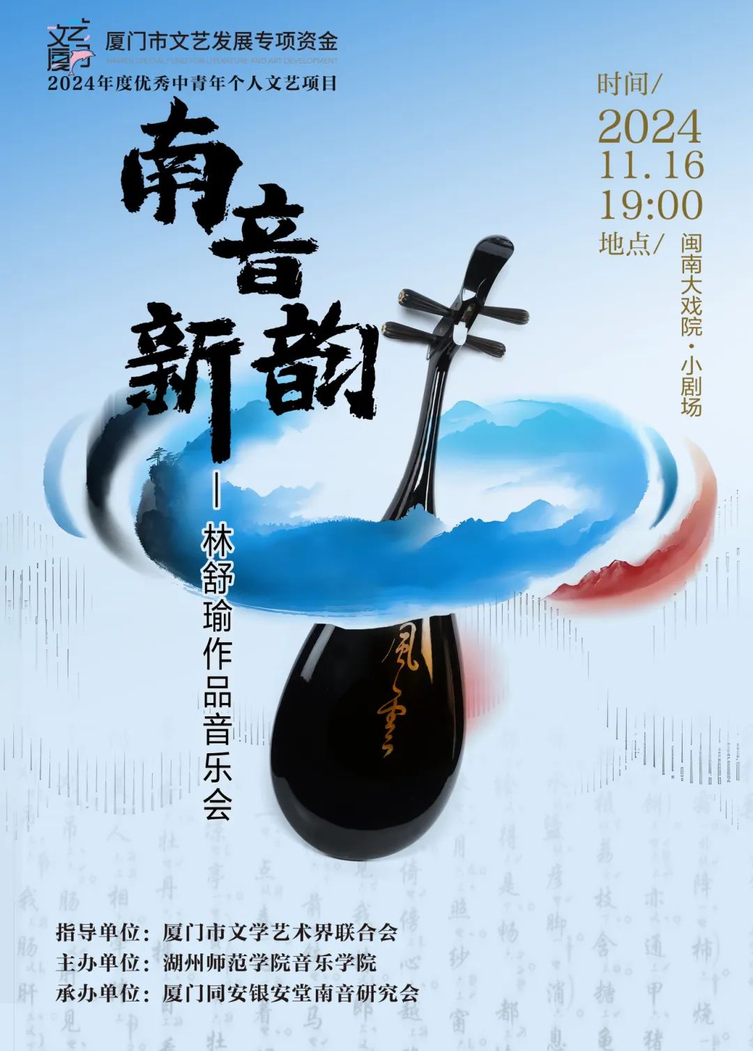 此外,这次音乐会也是林舒瑜十六年在外求学期间,在南音创作领域取得的成绩的集中展示,包括创作的南音作品获奖、委约、受邀参加音乐节等。