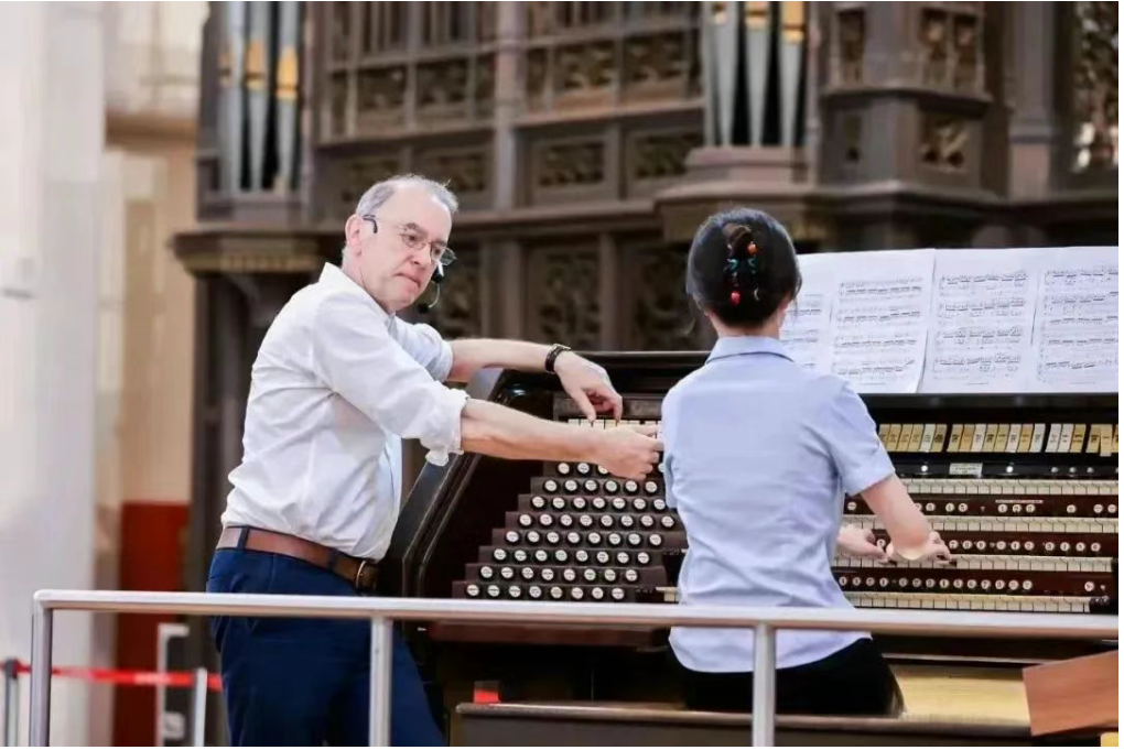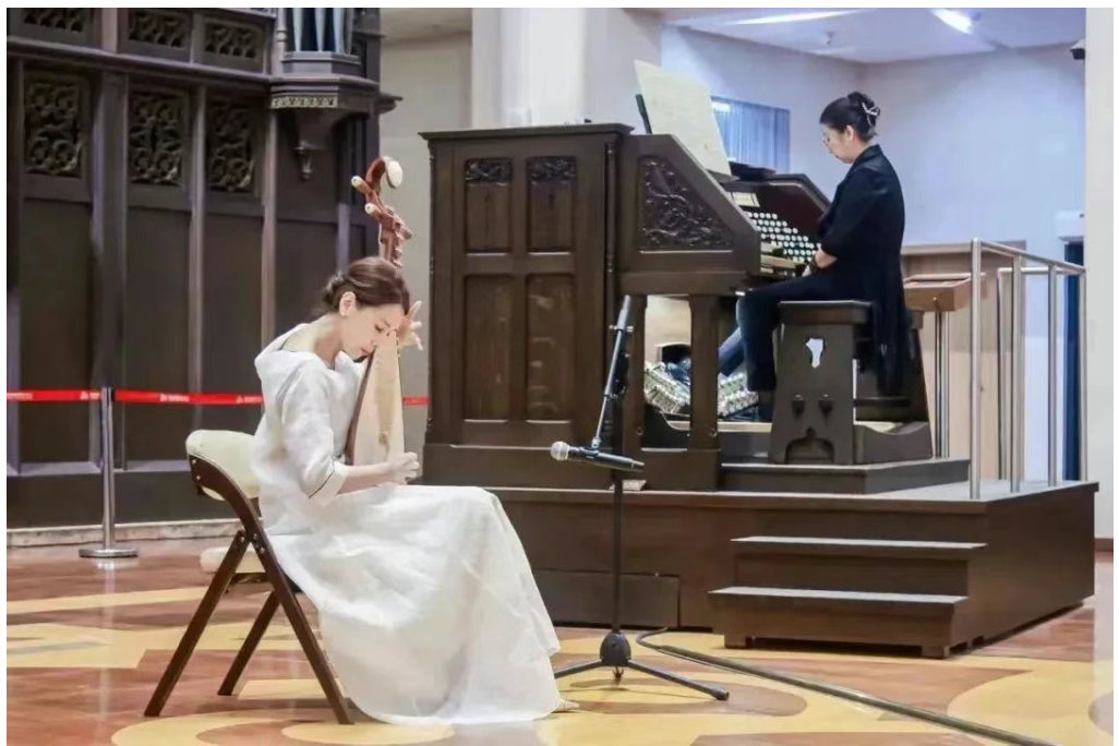著名管风琴和羽管键琴演奏家沈凡秀和琵琶演奏家董晓琳在鼓浪屿管风琴艺术中心合作演出琵琶协奏曲《云想花想》,展现乐器之王与东方丝弦的跨时空对话。